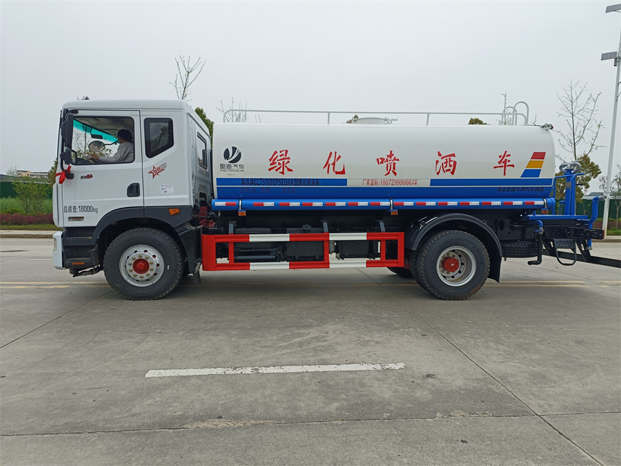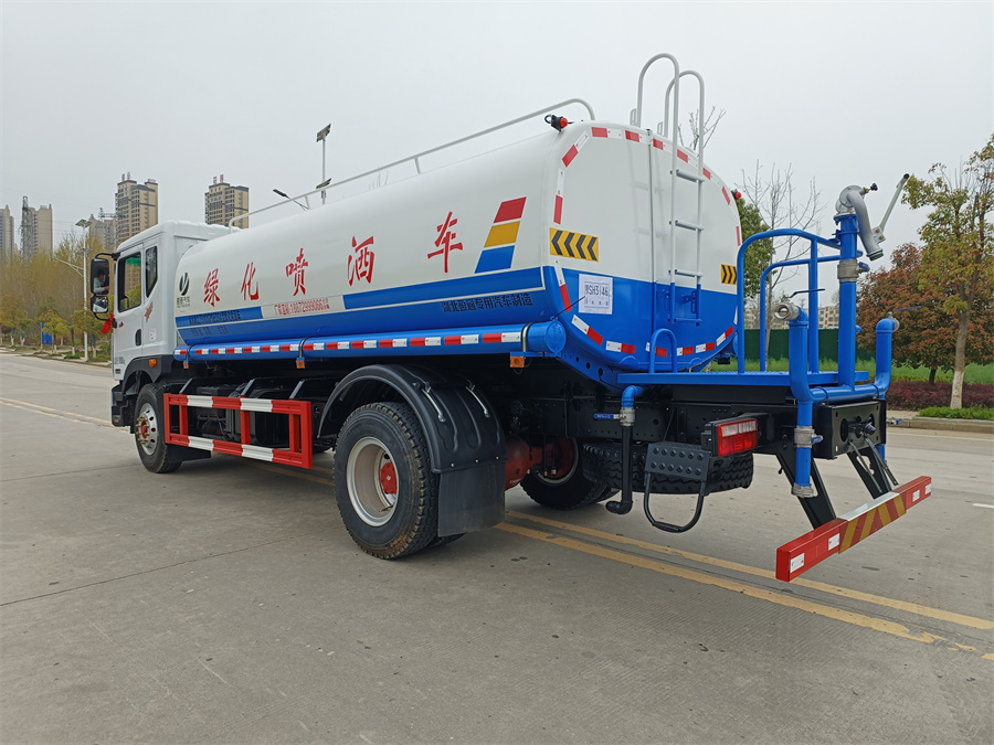 我公司產(chǎn)品標配前噴(鴨嘴)、后沖、后灑、側噴、后置式工作 平臺,平臺上配置綠化水炮(可 360°旋轉,既可以調成柱狀,也可 以調成霧狀,更可以調成直沖狀、大雨、中雨、小雨、毛毛雨),配 備優(yōu)質(zhì)大功率專(zhuān)用灑水泵(可自吸自排,可從河里或池塘抽水到罐體), 取力器,雜物過(guò)濾網(wǎng),消防接口,自流球閥系統、取力器、球閥、濾網(wǎng) 均為國家標準產(chǎn)品,主管道加粗,法蘭墊、法蘭盤(pán)加厚,大通徑球閥。 整體具備性能優(yōu)良安全可靠、效率高、流量大、維修方便等特點(diǎn)