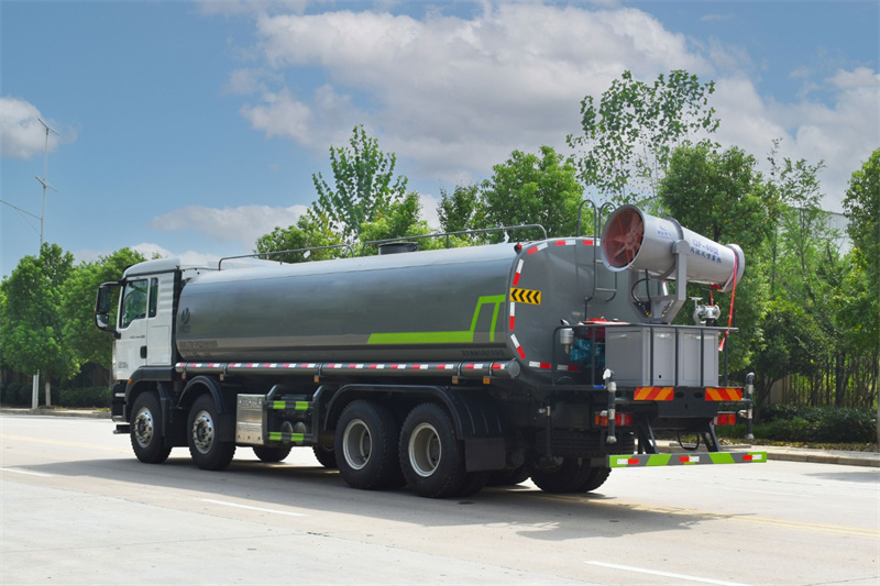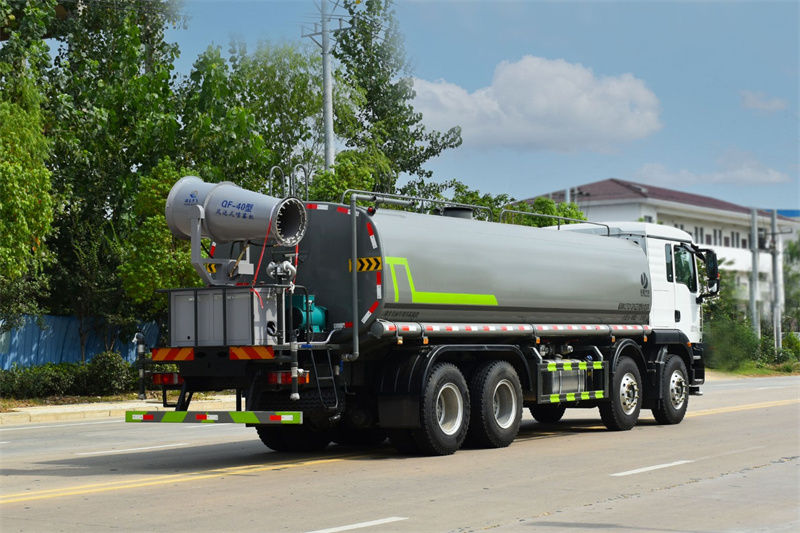 縱昂牌CLT5311GPSZZ6綠化噴灑車(chē)標配前噴(鴨嘴 ) 、后 對沖、后灑、側噴、后置式工作平臺,平臺上配置綠化水炮(可 360°旋 轉, 既可以調成柱狀,也可以調成霧狀),配備優(yōu)質(zhì)大功率專(zhuān)用灑水泵(可自吸 自 排,可從河里或池塘抽水到罐體),取力器,雜物過(guò)濾網(wǎng),消防接口,自流球閥 系統、取力器、球閥、濾網(wǎng)均為國家標準產(chǎn)品,主管道加粗,法蘭墊、法蘭盤(pán) 加厚,大通徑球閥。整體具備性能優(yōu)良安全可靠、效率高、流量大、維修方便 等特點(diǎn)