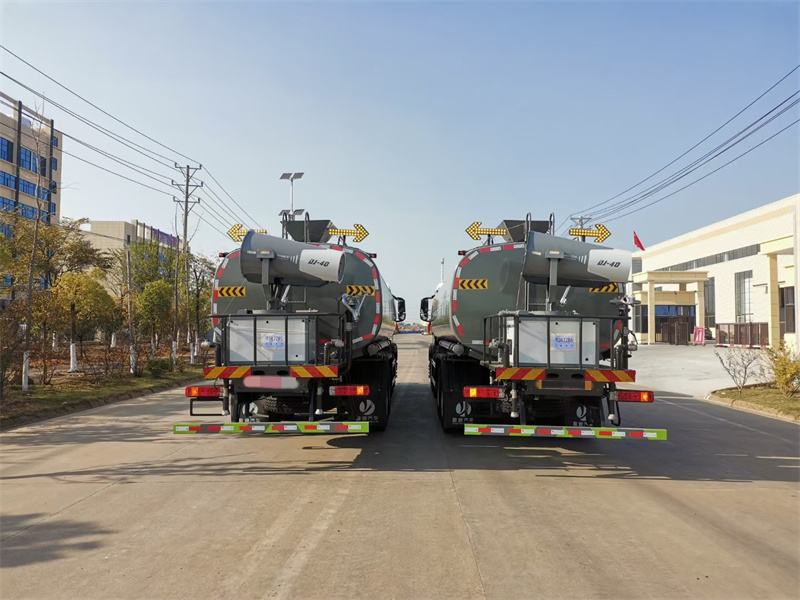 縱昂牌CLT5311TDYZZ6型多功能抑塵車(chē)標配前噴(鴨嘴 ) 、后 對沖、后灑、側噴、后置式工作平臺,平臺上配置綠化水炮(可 360°旋 轉, 既可以調成柱狀,也可以調成霧狀),配備優(yōu)質(zhì)大功率專(zhuān)用灑水泵(可自吸 自 排,可從河里或池塘抽水到罐體),取力器,雜物過(guò)濾網(wǎng),消防接口,自流球閥 系統、取力器、球閥、濾網(wǎng)均為國家標準產(chǎn)品,主管道加粗,法蘭墊、法蘭盤(pán) 加厚,大通徑球閥。整體具備性能優(yōu)良安全可靠、效率高、流量大、維修方便 等特點(diǎn)。