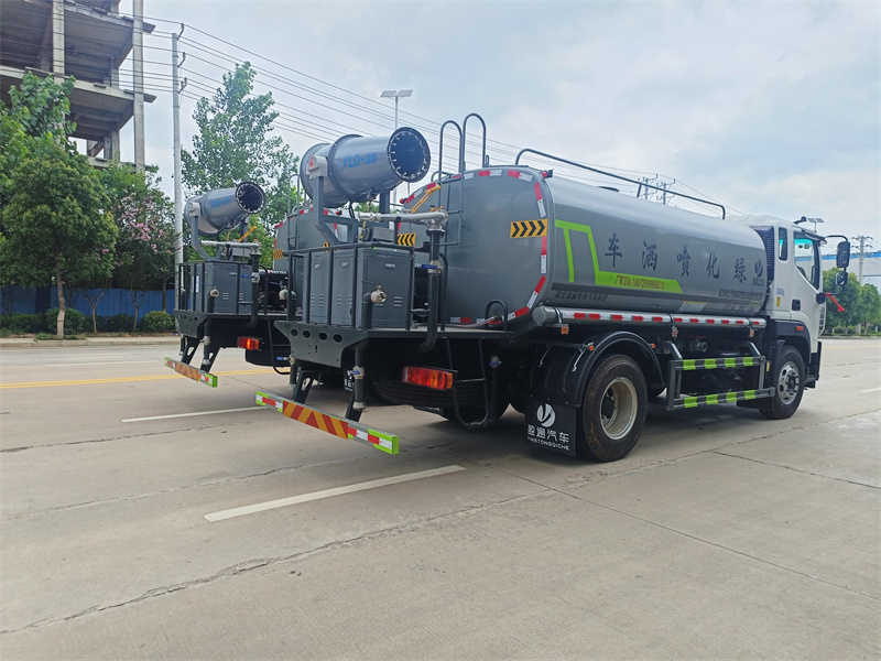 罐體約為 15 方、邊燈帶電,罐體尾部上方標配 2 個(gè)紅色示寬燈 、前噴為鴨嘴直沖,標配后對沖,用戶(hù)可根據自己的需求,來(lái)調整對沖位置 、沖孔平臺(承載能力加強),炮筒后蓋為定制型螺栓卡扣 、前噴、后對沖、后灑球閥均采用 50 大通徑不銹鋼球閥 、新式軸承式水炮,更加耐用。配 60-90 型水泵 、側噴和高炮管道加粗并配 65 大通徑不銹鋼球閥,壓力更大 、防腐法蘭墊片 、鋁制后灑,不易炸開(kāi) 、罐體自動(dòng)焊(美國林肯焊機及電源),拼板自動(dòng)焊接封頭環(huán)縫焊接,無(wú)氣 孔焊縫美觀(guān) 、爬梯、側護網(wǎng)、后保險杠均為螺栓連接方便拆卸維修 、塑料擋泥板替代鐵擋泥板更加輕便,用螺栓連接方便拆卸 、前部、后部主管連接處為 6 孔圓法蘭連接不易沖墊