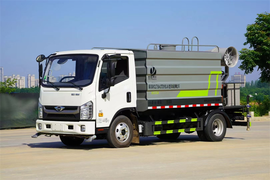 福田7方藍牌霧炮灑水車(chē)產(chǎn)品簡(jiǎn)述:縱昂牌 CLT5043TDYBJ6 型多功能抑塵車(chē)標配前噴(鴨嘴)、后對 沖、后灑、側噴、后置式工作平臺,平臺上配置綠化水炮(可 360°旋轉,既可 以調成柱狀,也可以調成霧狀),配備優(yōu)質(zhì)大功率專(zhuān)用灑水泵(可自吸自排, 可從河里或池塘抽水到罐體),取力器,雜物過(guò)濾網(wǎng),消防接口,自流球閥系統、 取力器、球閥、濾網(wǎng)均為國家標準產(chǎn)品,主管道加粗,法蘭墊、法蘭盤(pán)加厚, 大通徑球閥。整體具備性能優(yōu)良安全可靠、效率高、流量大、維修方便等特點(diǎn)。