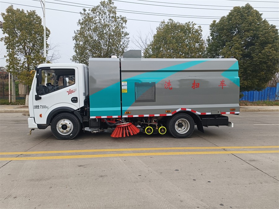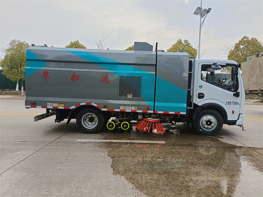 箱體材質(zhì)為Q235碳鋼,箱體做電泳處理?蛇x不銹鋼水箱,垃圾箱水箱,容積3方,塵箱容積3方。帶2個(gè)中置掃 盤(pán),玉柴102馬力副發(fā)動(dòng)機;三洋馬達;高壓水泵(前沖/側噴/中噴/沖洗水槍/垃圾箱 自潔裝置);控制器;控制箱;PLC一鍵控制;尾部LED箭頭燈;垃圾箱、水箱均帶防 溢低水位報警裝置;倒車(chē)及洗掃狀態(tài)室內監視器。20m高壓沖洗卷盤(pán)。,洗掃車(chē)帶灑水功能,可以沖洗路面