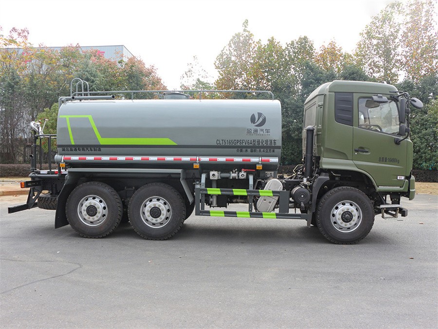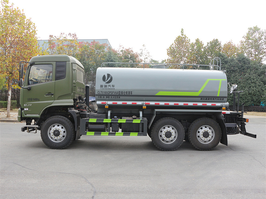 灑水車(chē)產(chǎn)品標配前噴(鴨嘴)、后沖、后灑、側噴、后置式工作 平臺,平臺上配置綠化水炮(可 360°旋轉,既可以調成柱狀,也可 以調成霧狀,更可以調成直沖狀、大雨、中雨、小雨、毛毛雨),配 備優(yōu)質(zhì)大功率專(zhuān)用灑水泵(可自吸自排,可從河里或池塘抽水到罐體), 取力器,雜物過(guò)濾網(wǎng),消防接口,自流球閥系統、取力器、球閥、濾網(wǎng) 均為國家標準產(chǎn)品,主管道加粗,法蘭墊、法蘭盤(pán)加厚,大通徑球閥。 整體具備性能優(yōu)良安全可靠、效率高、流量大、維修方便等特點(diǎn)